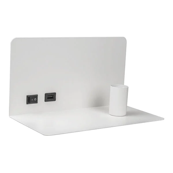 Aplique Pared E14 Blanco Con Base Para Apoyar Objetos Y Cargador USB Basic805-01  Conalux.
