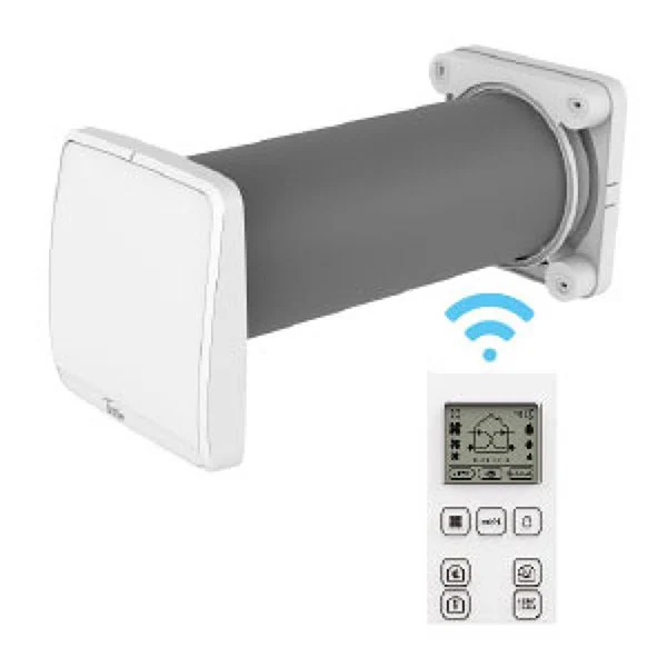 Unidad de recuperación de calor puntual con caudal reversible completo con intercambiador de tipo cerámico con rendimientos de hasta el 94%.